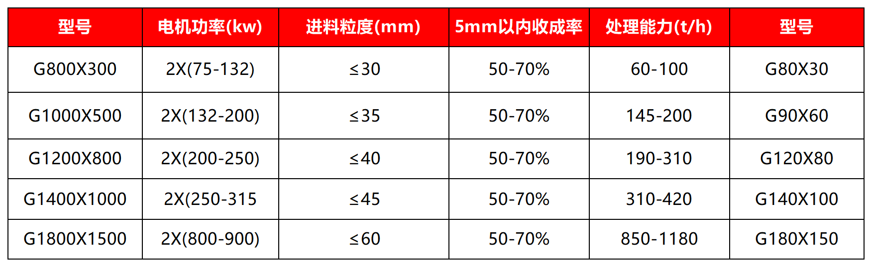 2.采用高锰钢材质整体铸造辊面与扇形辊面,大大的延长辊面的使用寿命,.高可达20000小时以上。